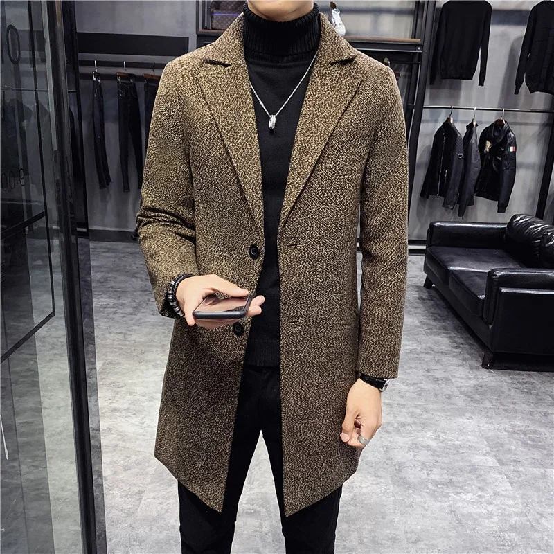 Мужское шерстяное пальто, ветровка с длинным рукавом, облегающее длинное пальто, тренчкот, уличное пальто
