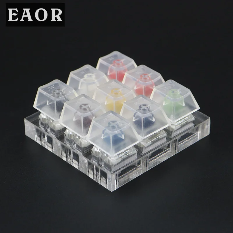 Тестер механического переключателя клавиатуры EAOR Box-shaft с 9 кнопками, прозрачная крышка для клавиатуры с акриловым основанием, черный коричневый желтый синий переключатель для Kailh