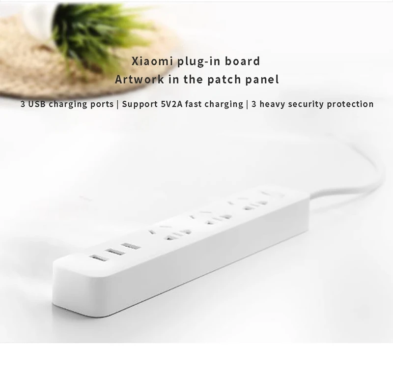 Многофункциональная Подключаемая плата Xiaomi 3USB 2A для быстрой зарядки