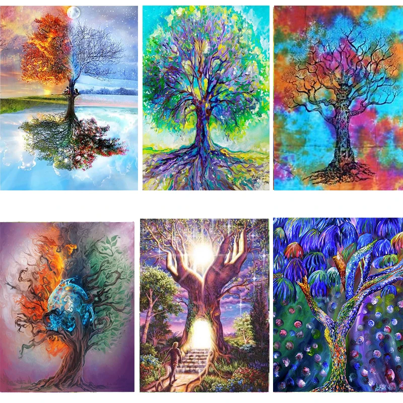 Алмазная 5D Вышивка сделай сам, картина из квадратныхкруглых страз, с рисунком пейзажа, дерева, вышивка крестиком, творчество
