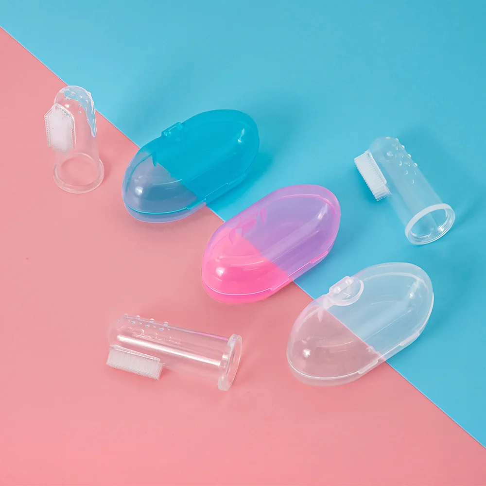 Детская Силиконовая зубная щетка на палец + коробка детские зубы Прозрачная мягкая силиконовая зубная щетка для младенцев резиновая Чистка