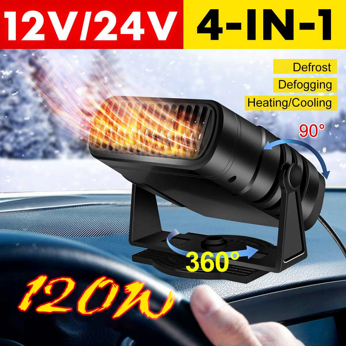 12V/24V зимний автомобильный обогреватель 360 Поворот Электрический 120W осушитель Demister 4 в 1 размораживание ветрового стекла размораживающий автоматический охлаждающий нагревательный вентилятор