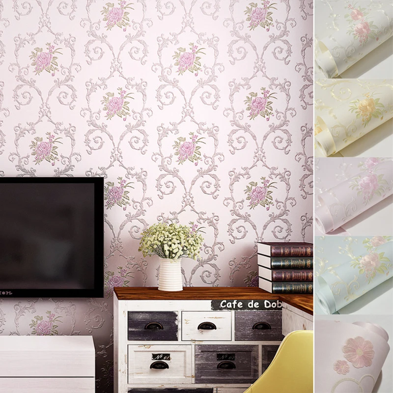 1 рулон 1 м обои 3D цветочный принт нетканый Европейский Стиль самоклеющиеся покрытия для стен украшения дома спальни Роскошный декор