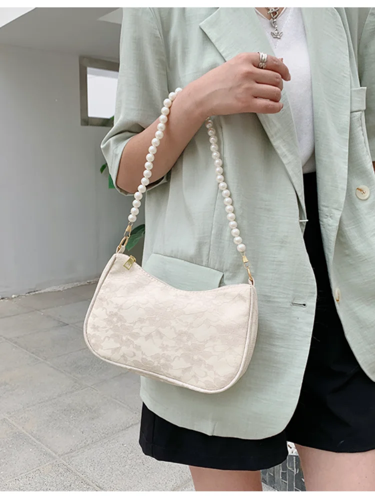 Модная женская кружевная сумка, повседневный маленький кошелек с цветами, жемчугом, на плечо, маленькая сумочка на молнии для отдыха и путешествий