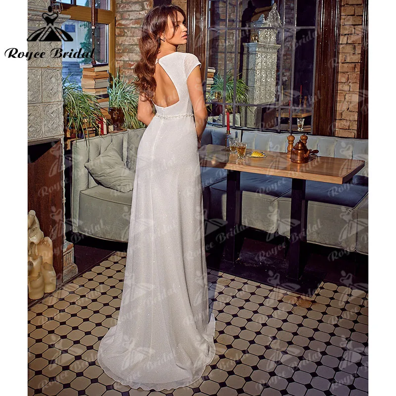 Блестящее сексуальное платье с открытой спиной, глубоким V-образным вырезом, разрезом сбоку, бисером, Пляжное свадебное платье трапециевидной формы, женское платье с коротким рукавом, 2022