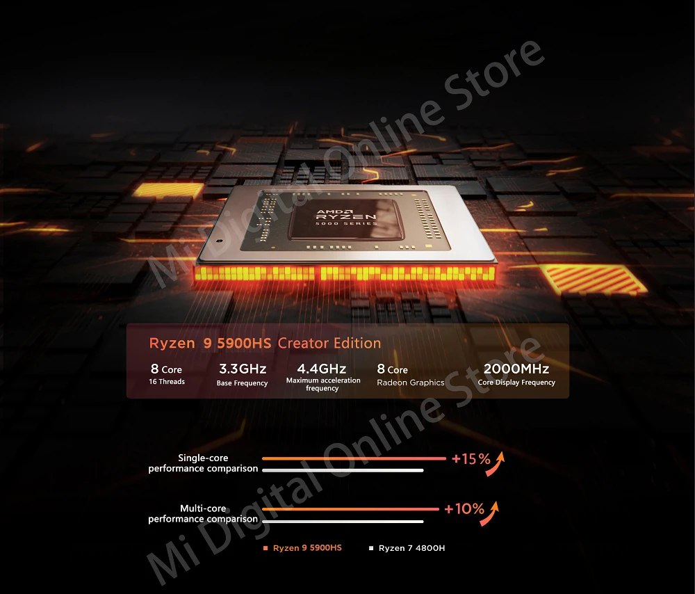 Более высокая производительность и быстрый отклик с использованием нового стандартного процессора напряжения Ryzen 9 5900 HS Creator Edition, усовершенствованная архитектура Zen 3 core, скачок вперед в производительности одного ядра, максимум 8 ядер 16 потоков, супер-много ядер, чтобы сохранить производительность и производительность игры до скорости, чтобы удовлетворить ваши более высокие требования