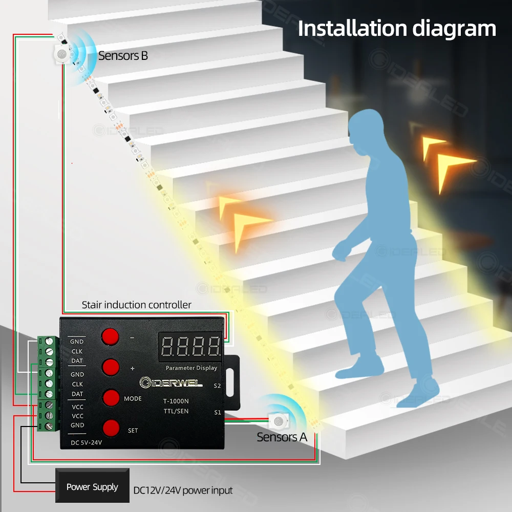 Светодиодный светильник для лестницы, контроллер движения PIR сенсор, адресуемый светодиодный RGB светильник для управления каждым лестничным светильник