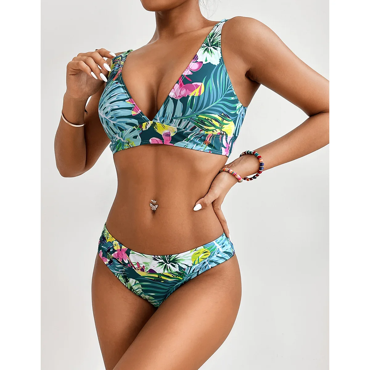 Купальник 2021 года, горячий принт листьев, низкая талия, комплект ...