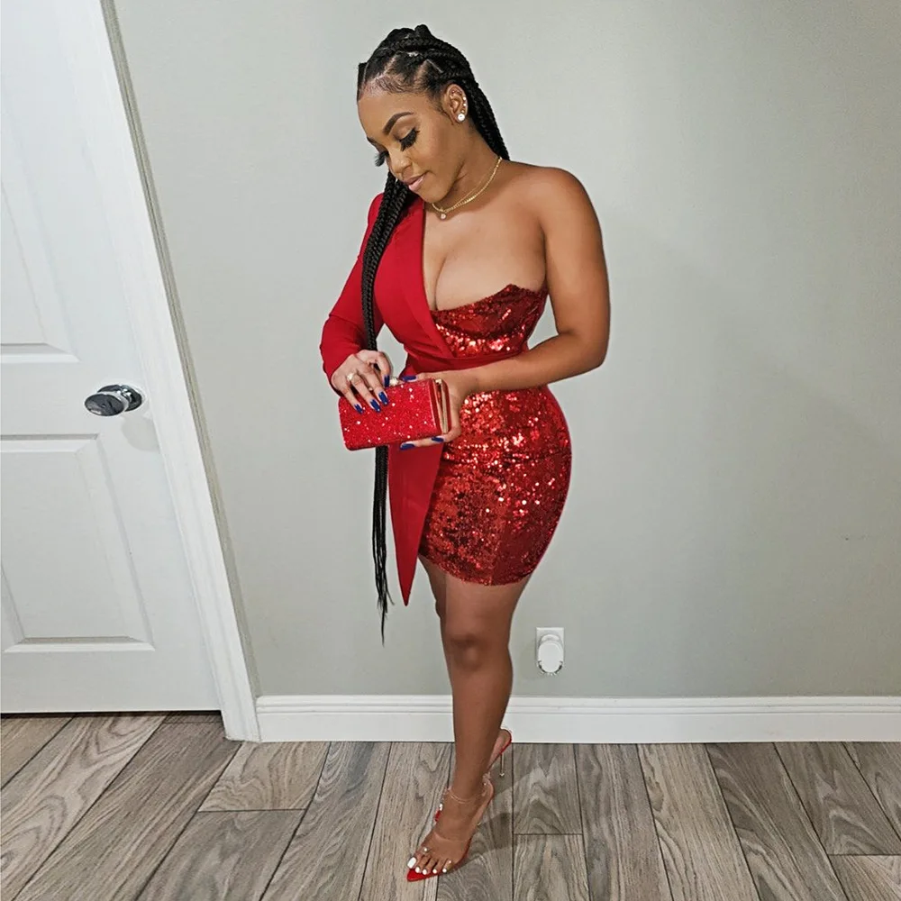 Рождественский Блейзер Adogirl на одно плечо, мини-платье для женщи...