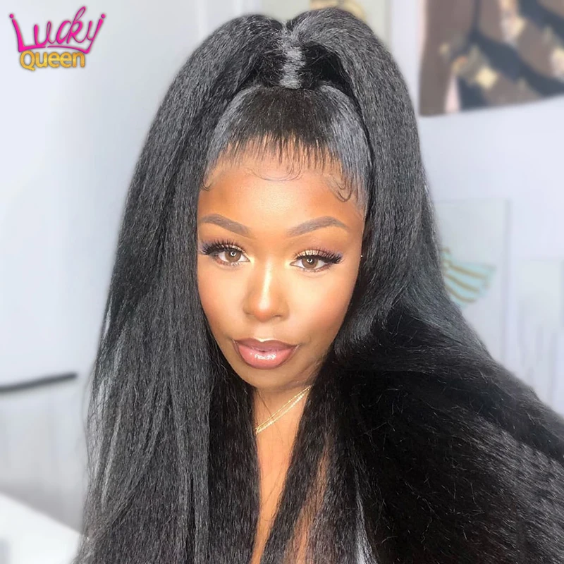 Кудрявые прямые человеческие волосы парик 13x4 прозрачные кружевные парики яки прямые 100% человеческих волос для наращивания, предварительно натуральный Цвет парик для Для женщин