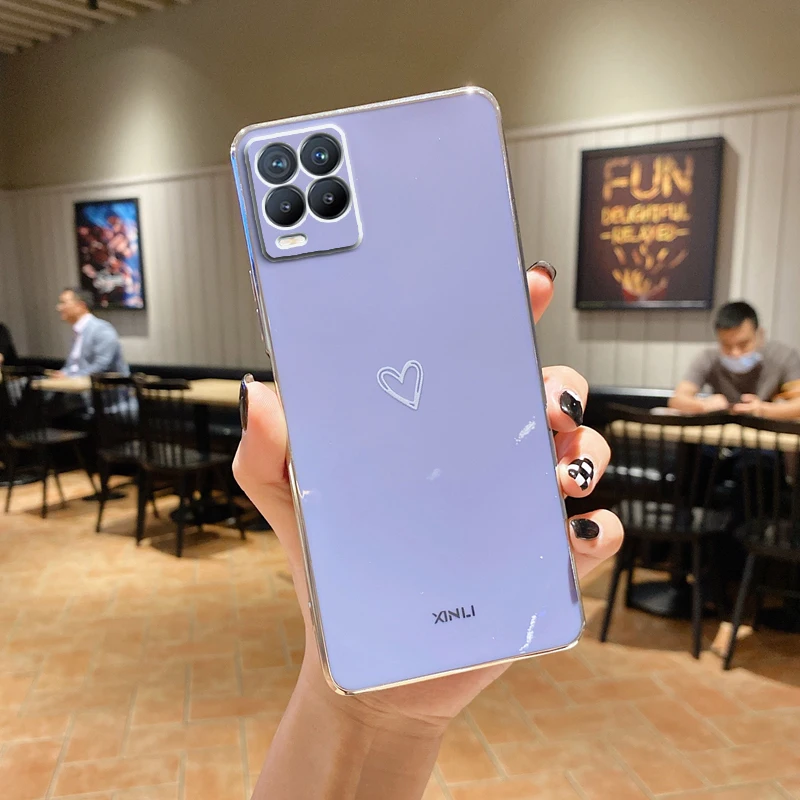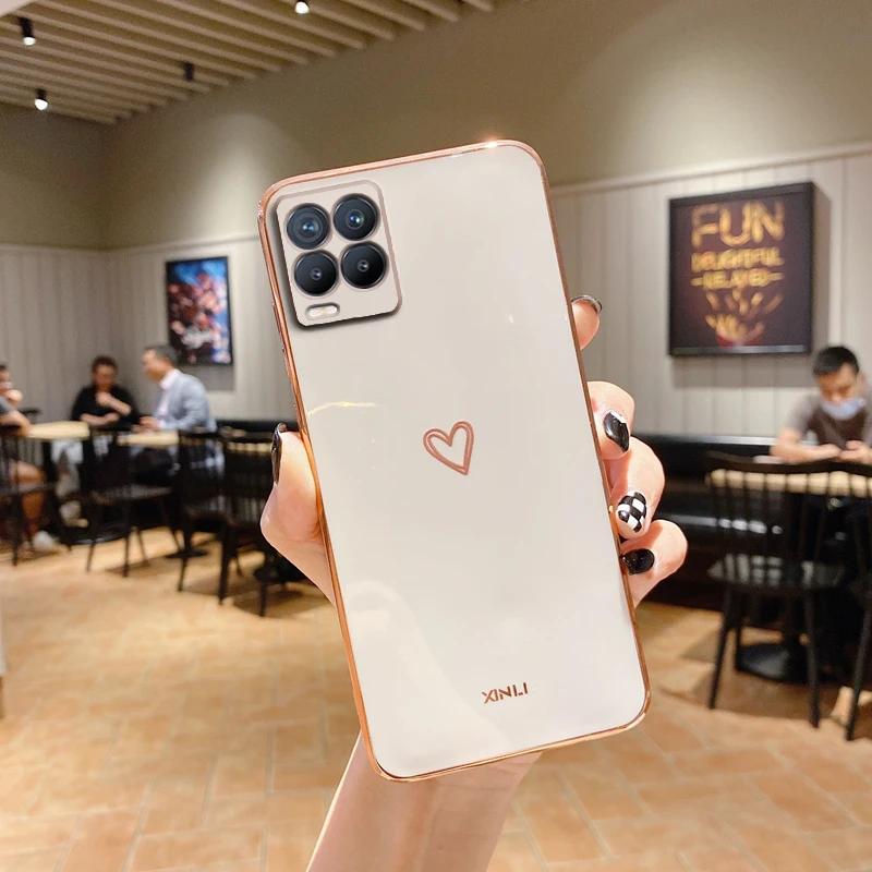 compatible model 4Luxury Square Plating Love Heart Silicone Phone Case For Oppo A53 Soft Back Cover
