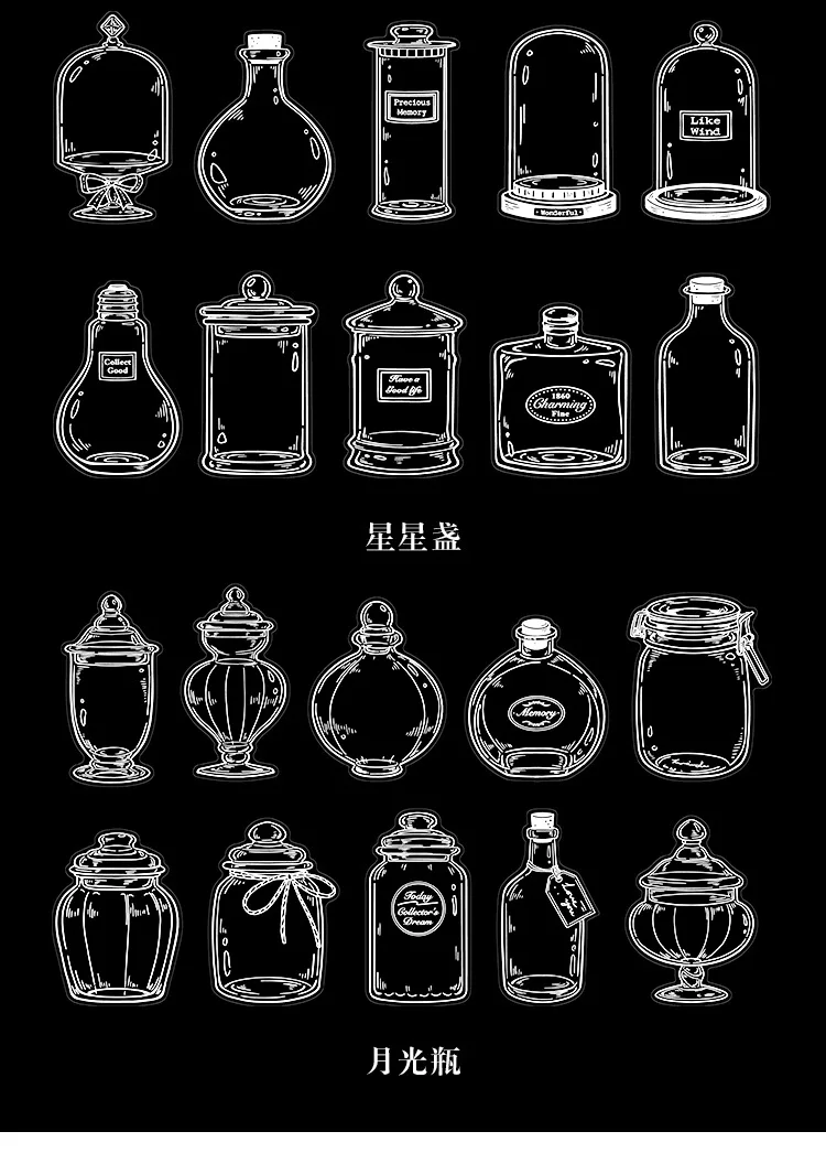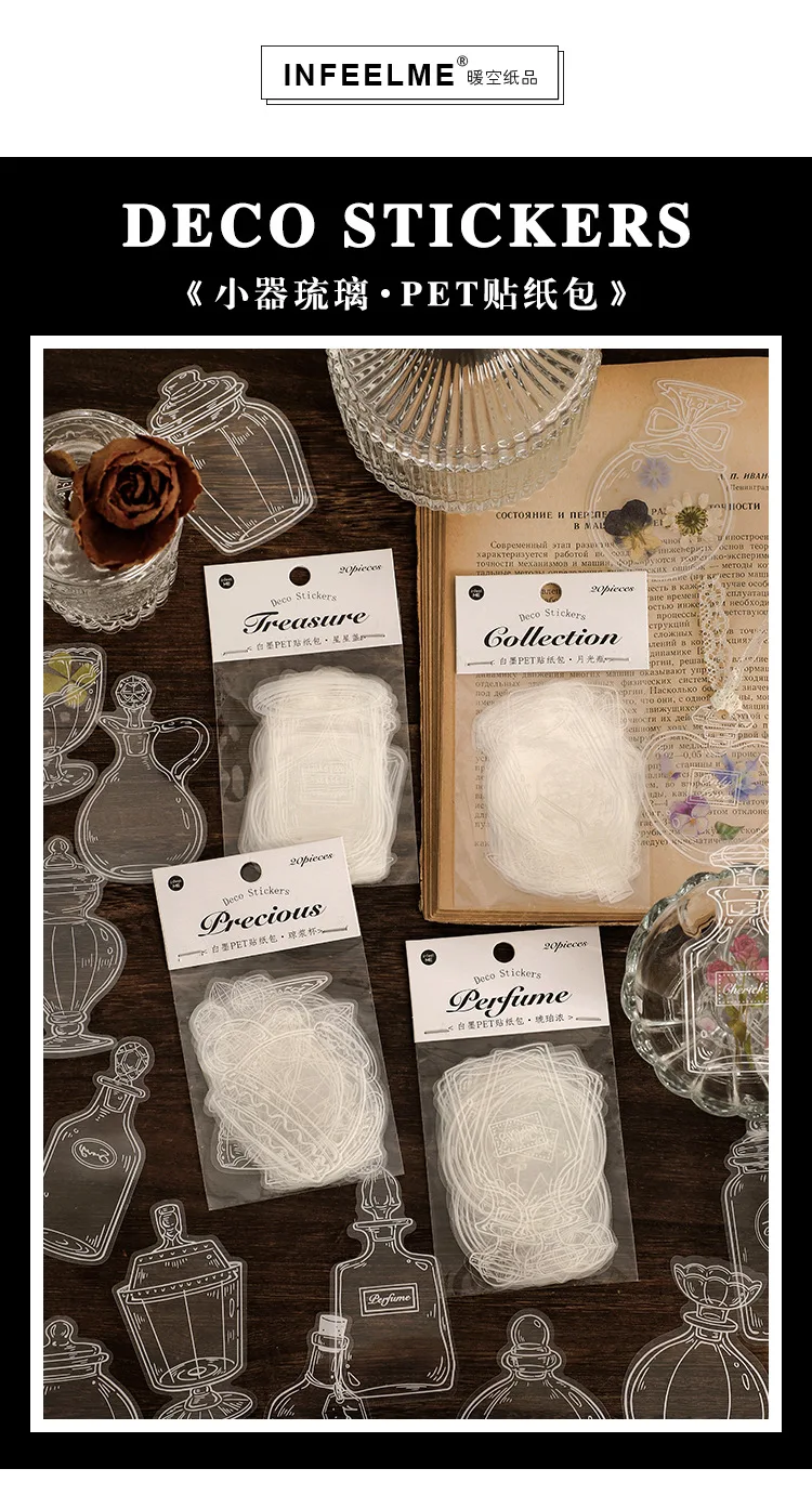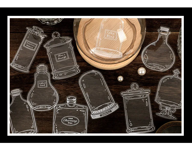20 шт.упаковка, декоративные прозрачные наклейки в стеклянной бутылке