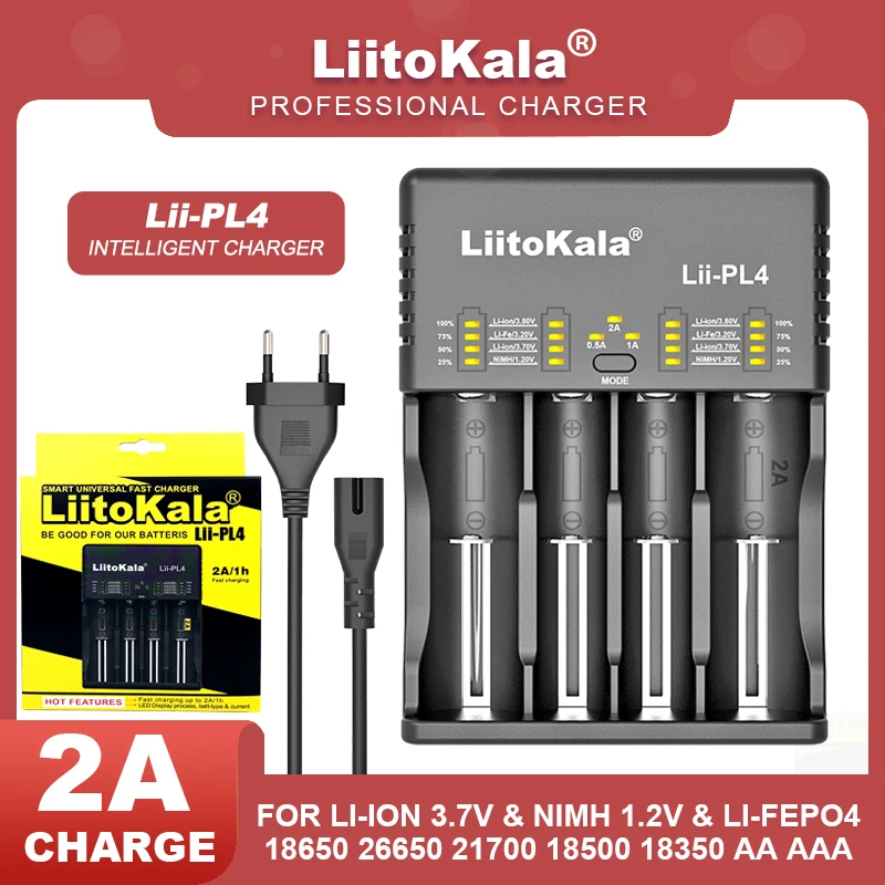 Lii-PL4-это новое многофункциональное умное зарядное устройство с 4 слотами, запущенное LiitoKala. Низкая цена, в то время как четыре типа батарей могут быть применены (Li-ion 4,2 V/4,35 V Ni-MH 1,2 V Li-Fe 3,6 V), и различные размеры батарей.