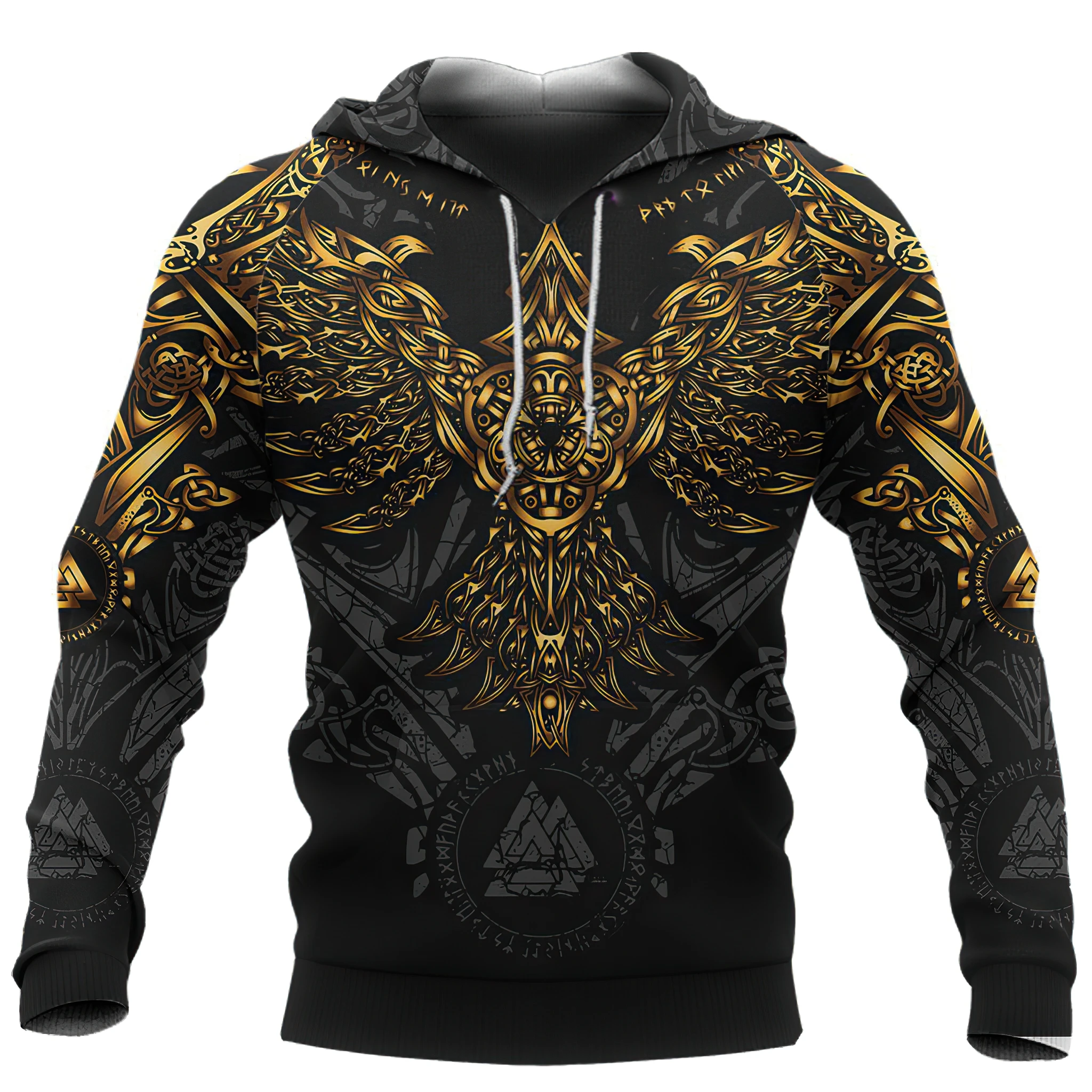 Красивая толстовка унисекс люкс с 3D-принтом викингов, Хугин, Золот...