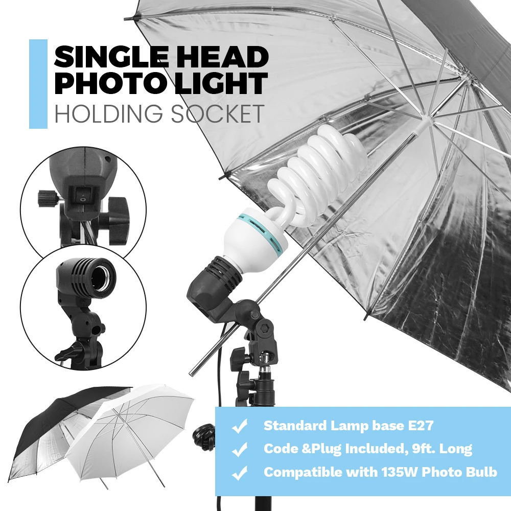135 Вт энергосберегающая лампа для фотографирования (5500K)Поставляется с гнездом E27, подходит для любого держателя на светильник с гнездом E27Деменция: 26 смДиаметр: 8 смПримечание: Пожалуйста, поверните пластиковую деталь для настройки