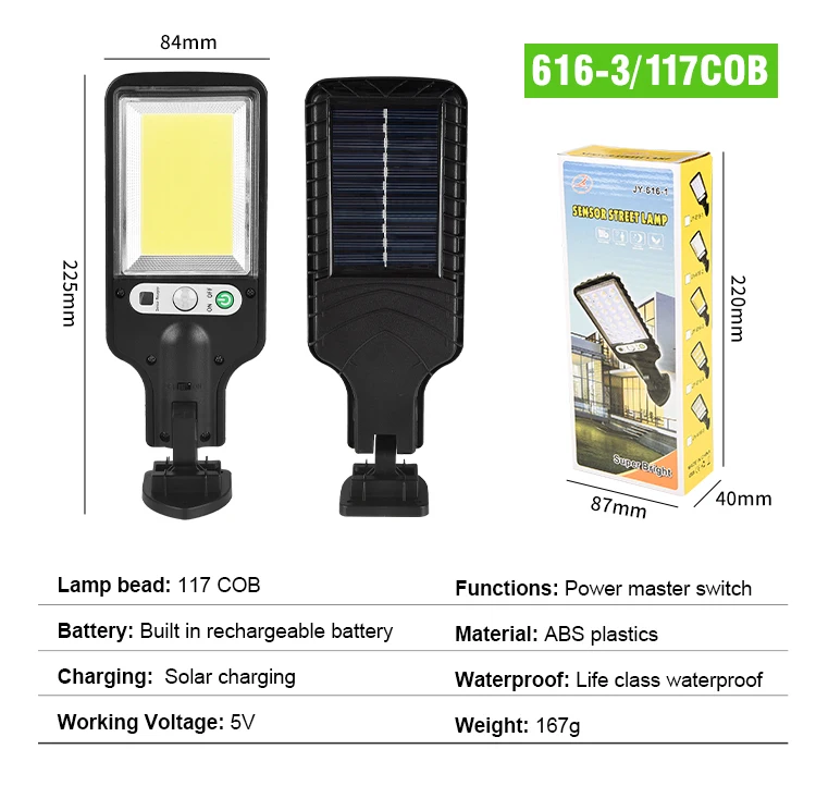 Уличный светодиодный светильник 117COB на солнечной батарее, водоне...