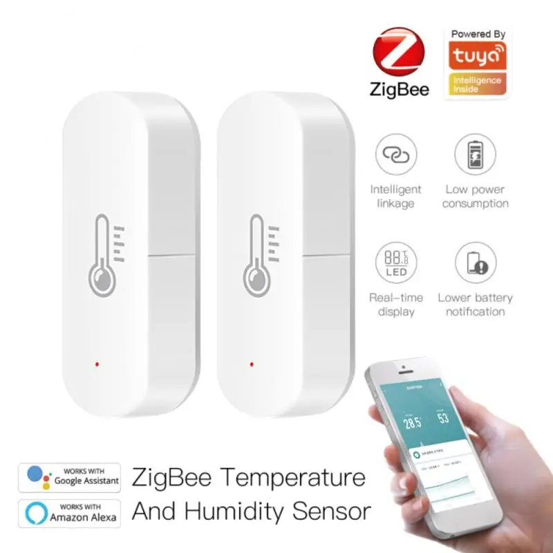 Датчик температуры и влажности Tuya ZigBee, гигрометр, термометр для умного дома, с поддержкой Alexa и Google Assistant