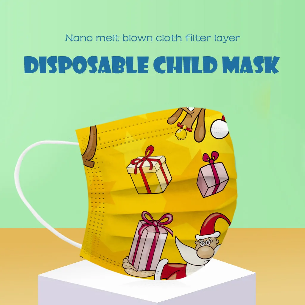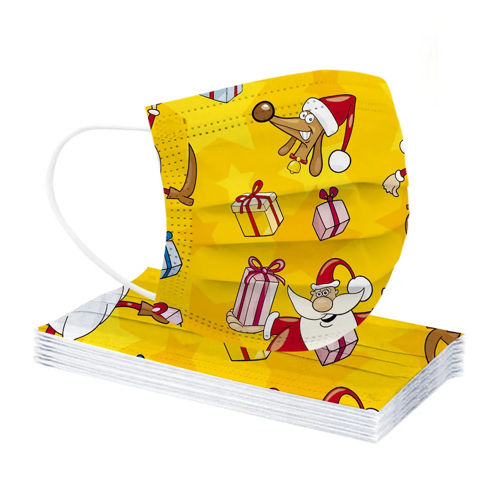 10 шт., детская трехслойная маска для лица с рождественским принтом