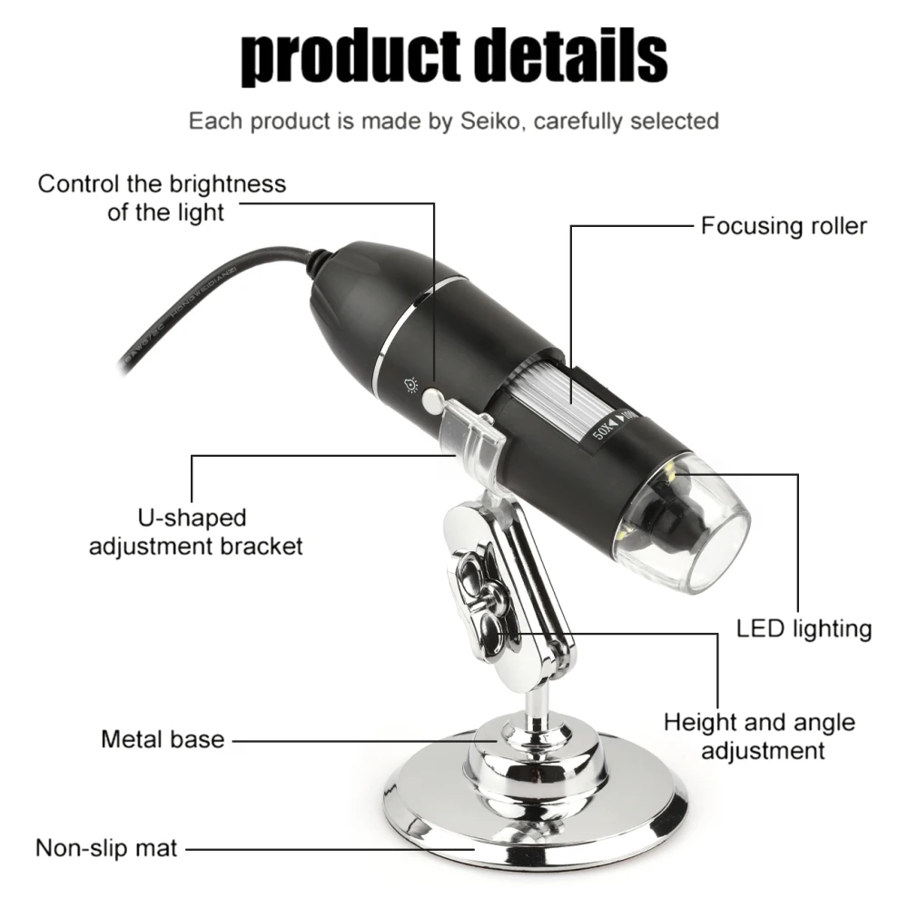 Микроскоп портативный, 1600X 1000X, USB, с кронштейном, 8 светодиодов