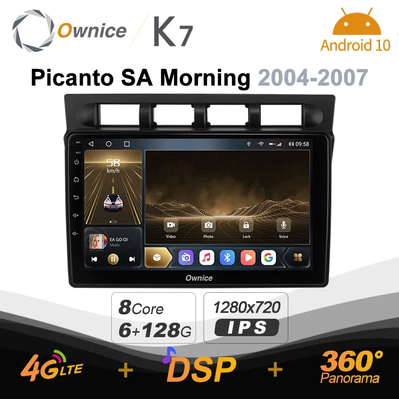 Автомагнитола K7 Ownice, 2 Din, Android 10,0, для Kia Picanto SA Morning 2004 - 2007 с 8-ядерным процессором A75 * 2 + A55 * 6, без DVD
