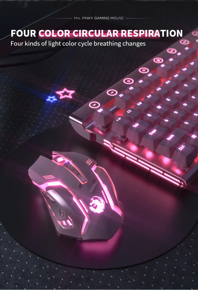Беспроводная игровая мышь Girl Cute Pink Game, перезаряжаемая, 2400...