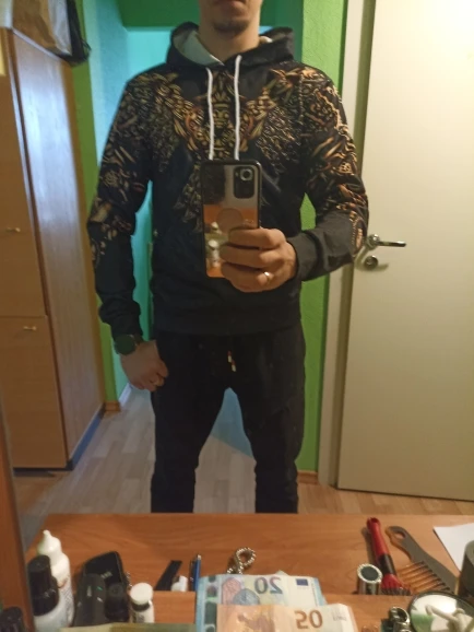 Мои измерения 187 см, 107 кг, и я заказал размер XXXL. У меня есть преимущество, что мой вес равномерно распределен, поэтому даже при 107 кг я не выгляжу толстым. У меня нет пивного пуха. Если вы тренируетесь, вы можете достичь размера XXL с аналогичными размерами. Ознакомьтесь с таблицей размеров продавцов и внимательно изучите ее. Принт очень хороший и приятный на ощупь после ношения. Это более теплый наряд.