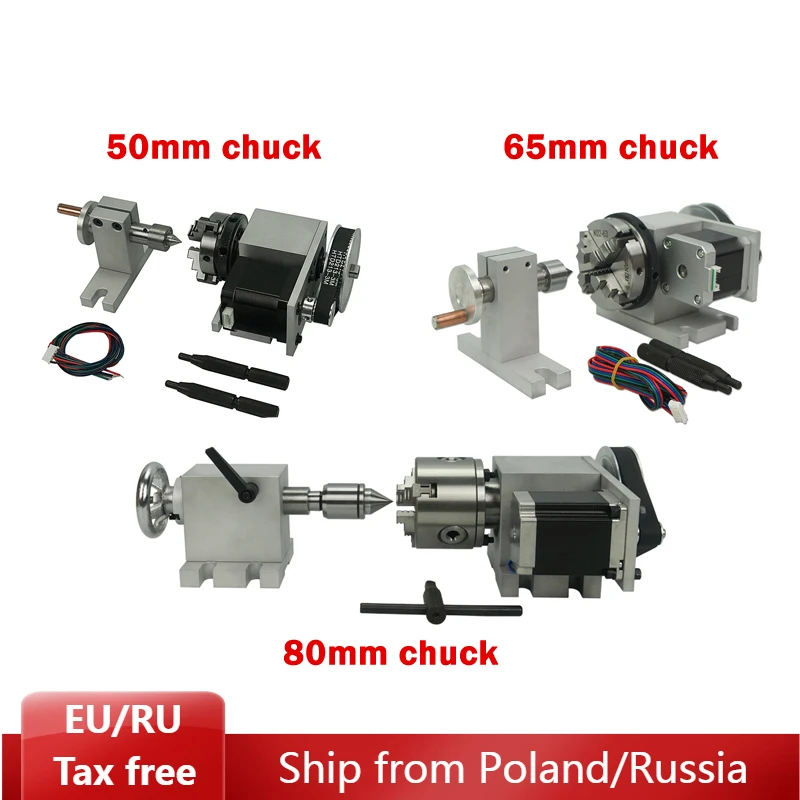 4-й Зажимной патрон с 4 осями вращения 50 мм 65 мм 80 мм и задняя часть с 42 57 шаговым двигателем для маршрутизатора с ЧПУ 3040 6040 8060