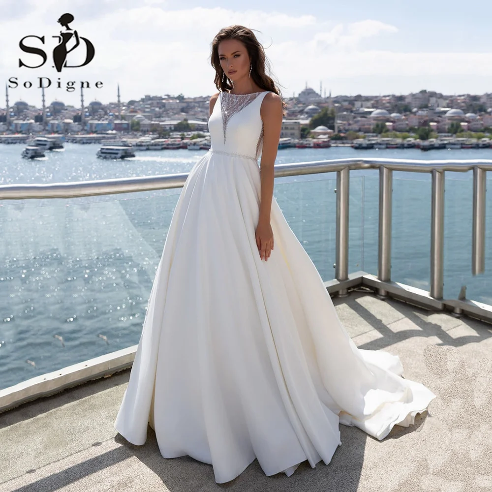 Атласное Бальное Платье soworthy, простое кружевное свадебное плать...