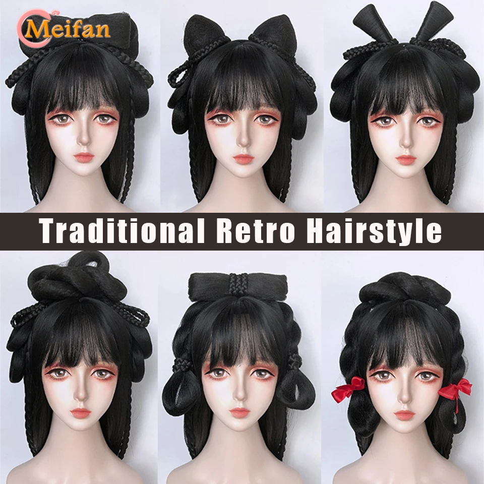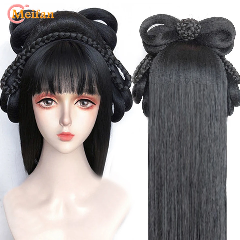MEIFAN старинные длинные косички ханьфу одежда античное моделирование Косплей парик на клипсе Наращивание волос Синтетические прямые волосы