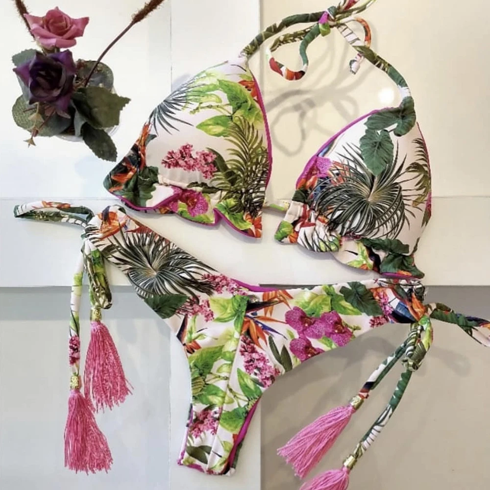 2021 бразильское сексуальное бикини с принтом купальник с бахромой ...
