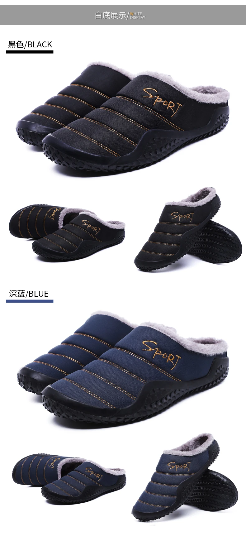 Новинка 2021, зимние тапочки JACKSHIBO для мужчин, теплая обувь для дома, короткие плюшевые шлепанцы на плоской подошве, мужские водонепроницаемые Нескользящие домашние тапочки