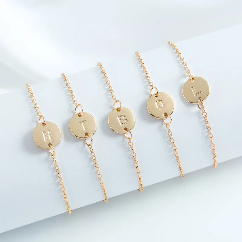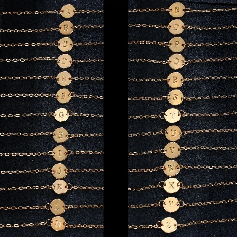 Золотистыйстальной цвет, 26 алфавитов, оригинальные светлые браслеты для женщин и девушек, регулируемый цепочка для пар, браслет-амулет