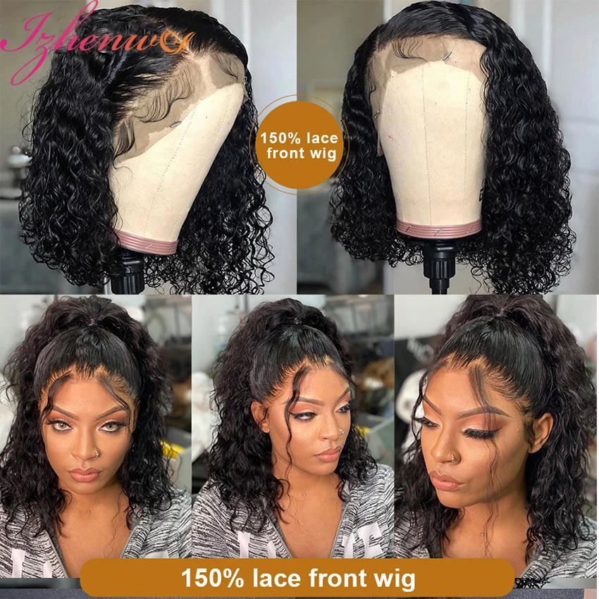 Wig Texturewater wave curly human hair bob Wig lace frontal Human Hair