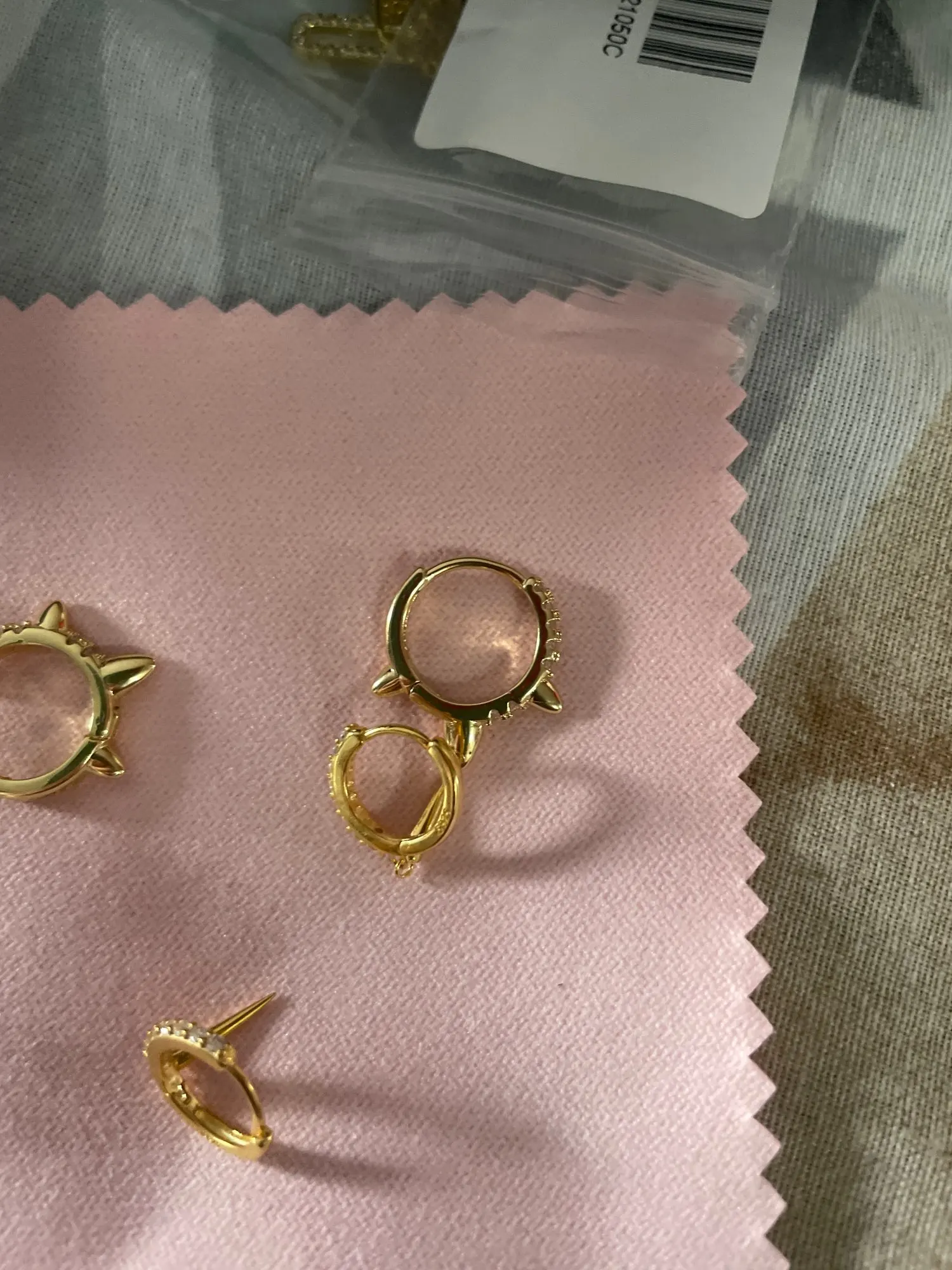 Они такие малюсенькие. Совсем крошечные, на ребёнка. На серьгах стоит проба. Отправили быстро, доехали быстро. Выглядят хорошо и качественно. Описания никакого, но по фото я думала они побольше будут.