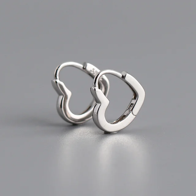 Серьги-кольца женские из серебра 925 пробы с французским круглым сердечком