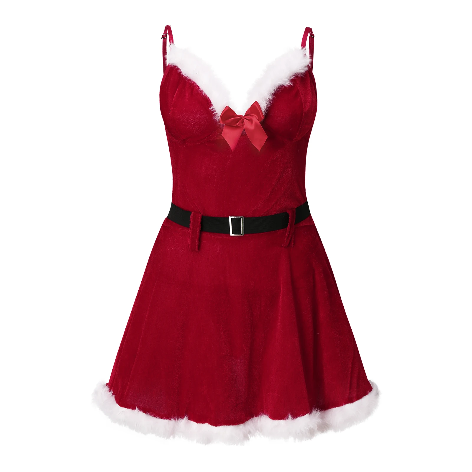 Рождественское нижнее белье, сексуальное, с V-образным вырезом, кружевное, плюшевое Ночное платье с кроликом, женское сексуальное нижнее белье, эротическое белье, сексуальная комбинация, ночная сорочка