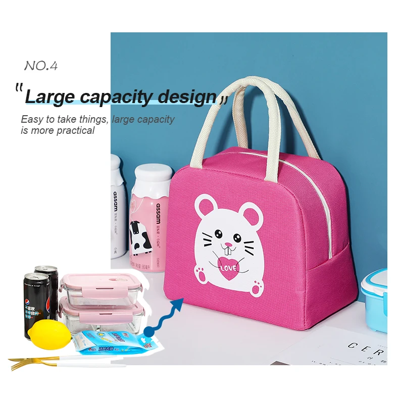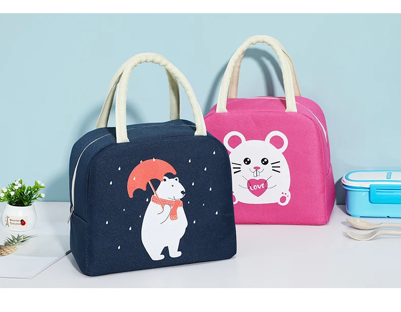 Мультяшная сумка для бенто, Женская портативная дорожная сумка для пикника, водонепроницаемая термоизоляционная детская школьная сумка для завтрака