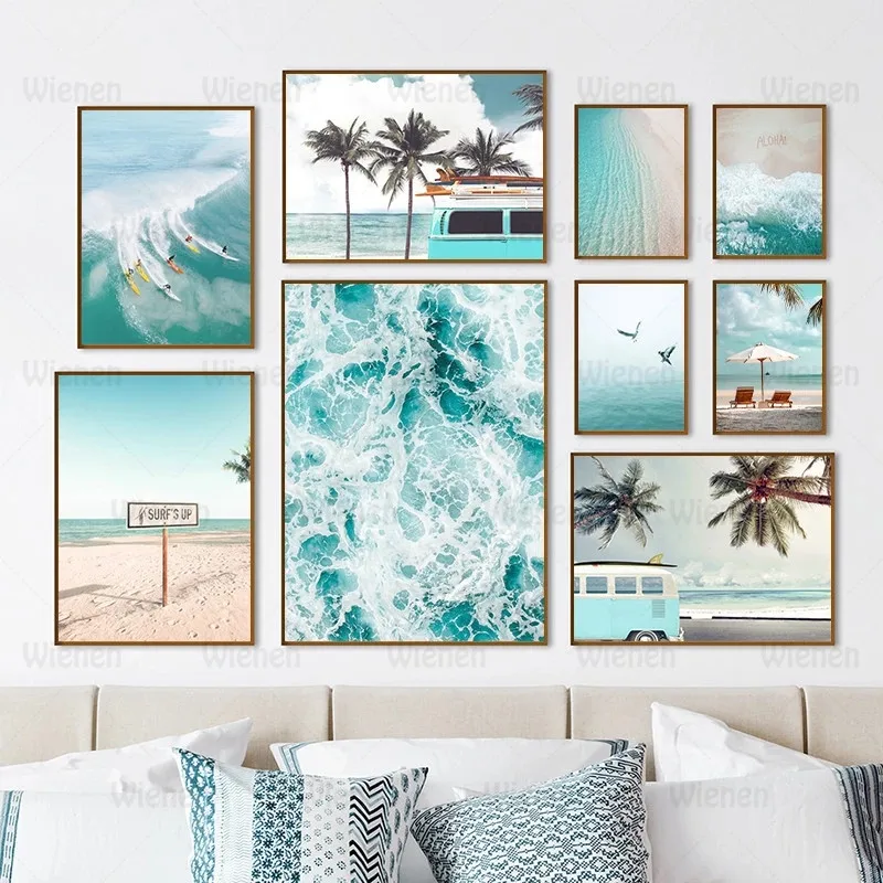 Современный синий морской пейзаж, искусство, холст, живопись, скандинавский спиндрифт, плакат, украшение комнаты, картина, природа, пляж, настенные декорации, плакаты