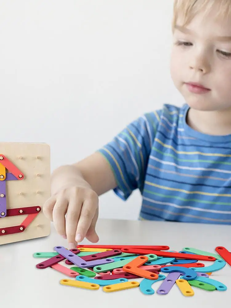 Деревянная Геометрическая доска для ногтей Монтессори, набор геометрических колонок, цифры, буквы алфавита, Китайский Персонаж, развивающая игрушка