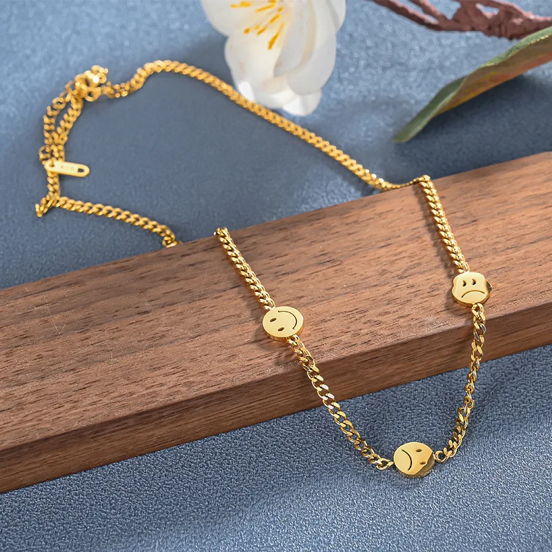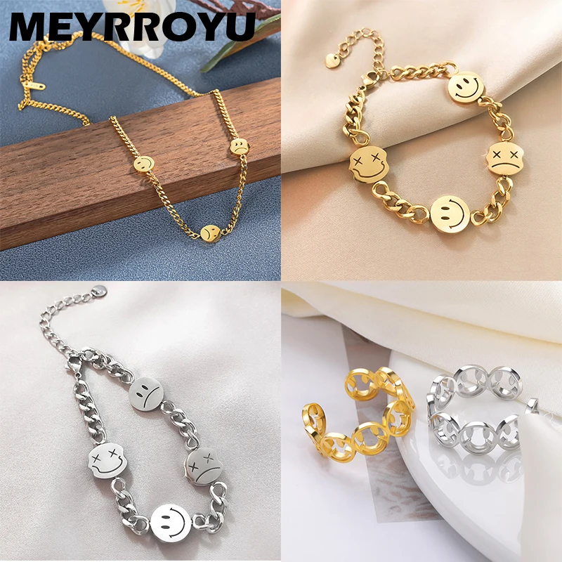 MEYRROYU колье из нержавеющей стали в стиле панк, хип-хоп, со смайликом, модное ожерелье, кольца 2021, трендовый Вечерние