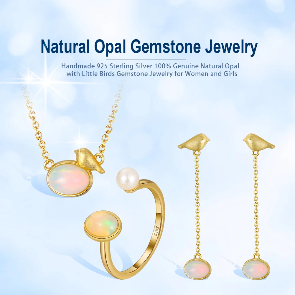 ORSA JEWELS ручная работа, Стерлинговое Серебро 925 пробы, маленькие птицы, висячие серьги с 100% натуральным опалом, драгоценный камень, ювелирные изделия для женщин GME03