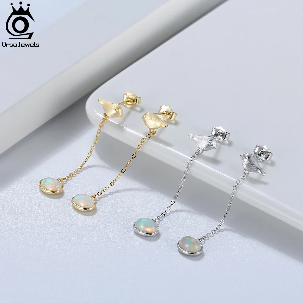 Женские серьги-подвески с маленькими птичками ORSA JEWELS, ювелирное изделие ручного изготовления из стерлингового серебра 925 пробы с 100% натуральным опалом, GME03