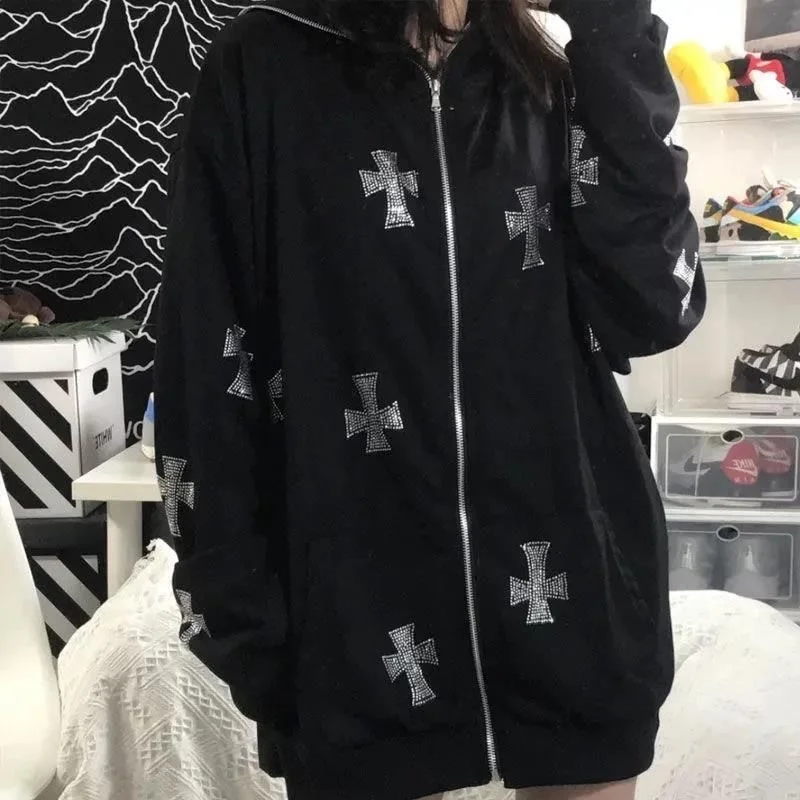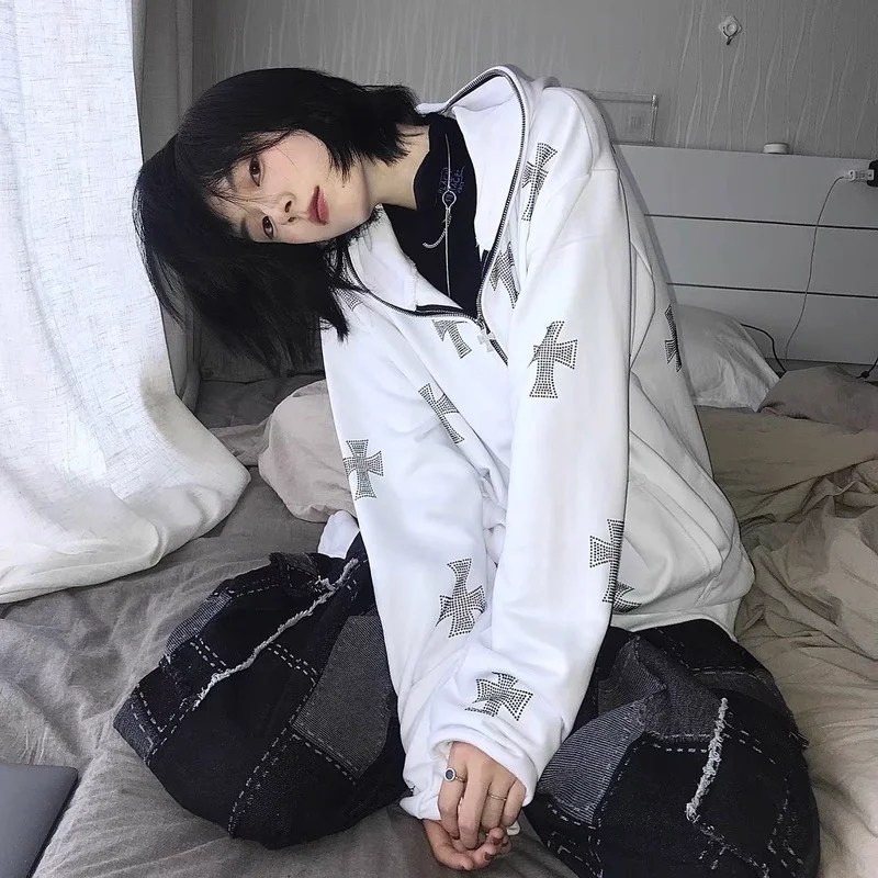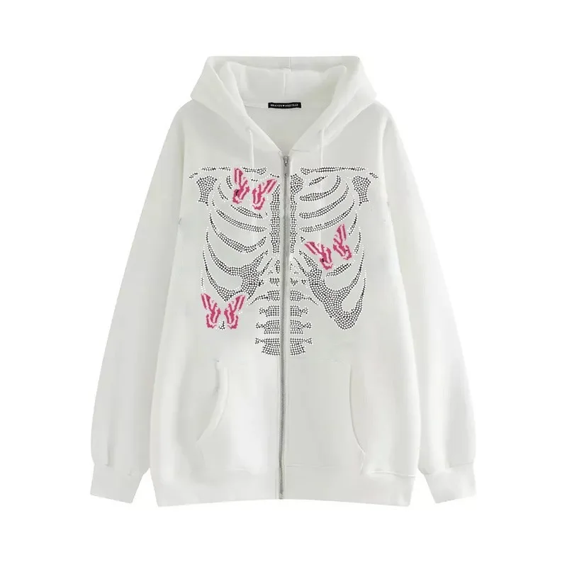 Женский свитшот с капюшоном, Свободный свитшот на молнии, с черепом, акварелью, стразами, Y2K, популярная одежда в готическом стиле, в стиле хип-хоп, с бабочкой, 2021