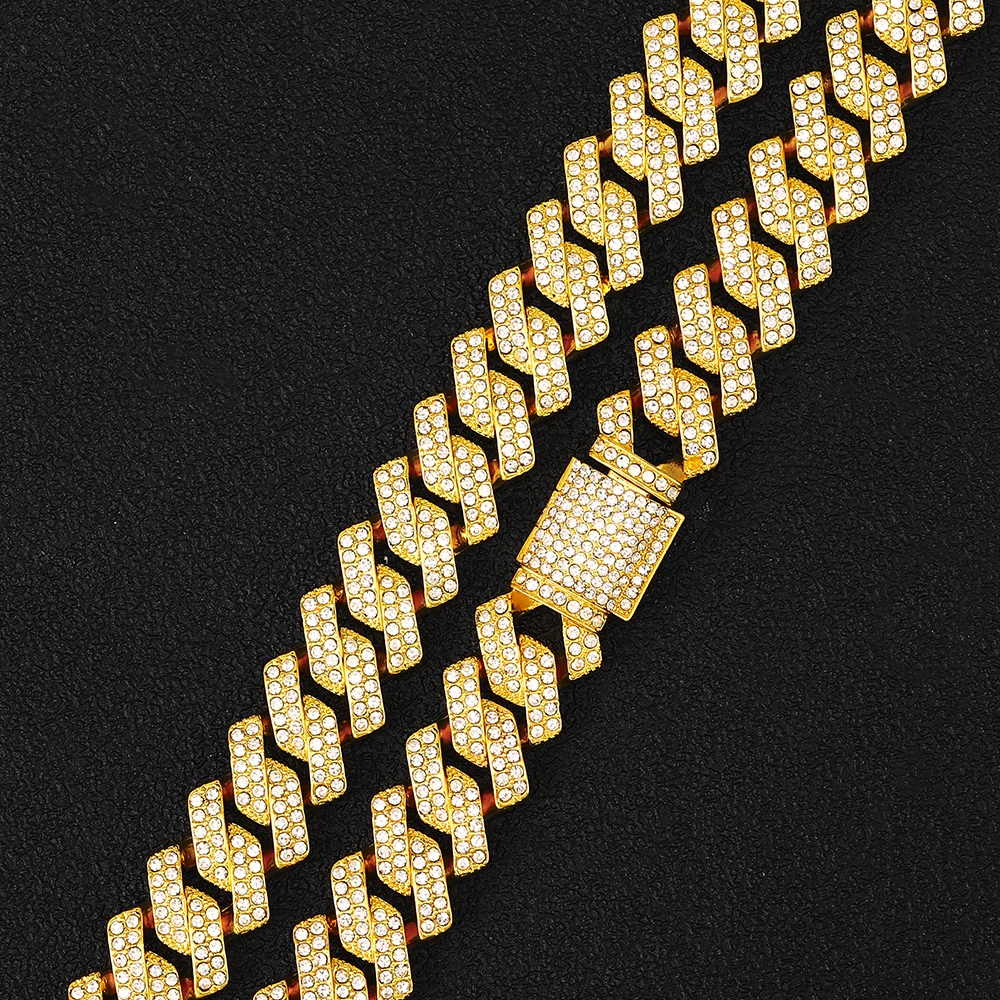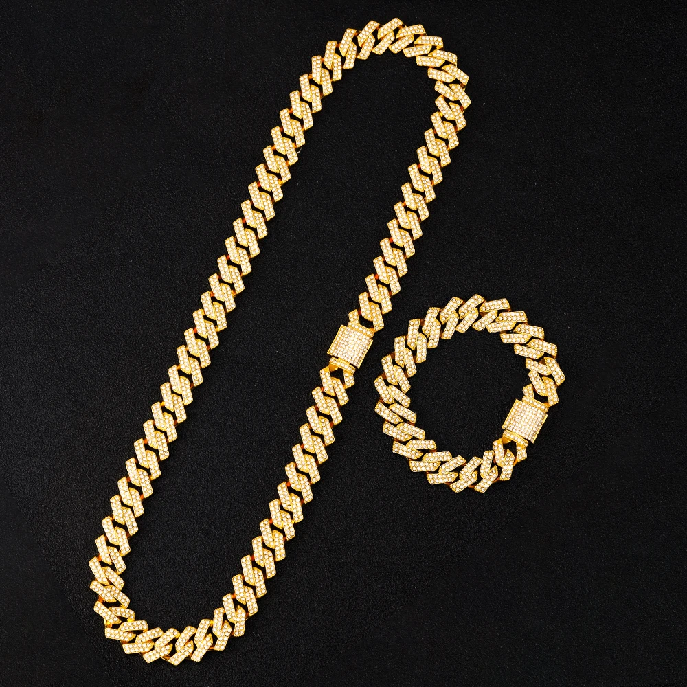 Тяжелые часы в стиле хип-хоп 15 мм + кубинское ожерелье с зазубринами Bling Crystal AAA + сверкающие цепи Стразы для мужчин ювелирные изделия