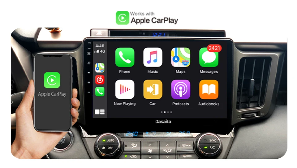 Проецируйте навигацию, музыку и другие функции мобильный телефон на большой экран автомобиля.