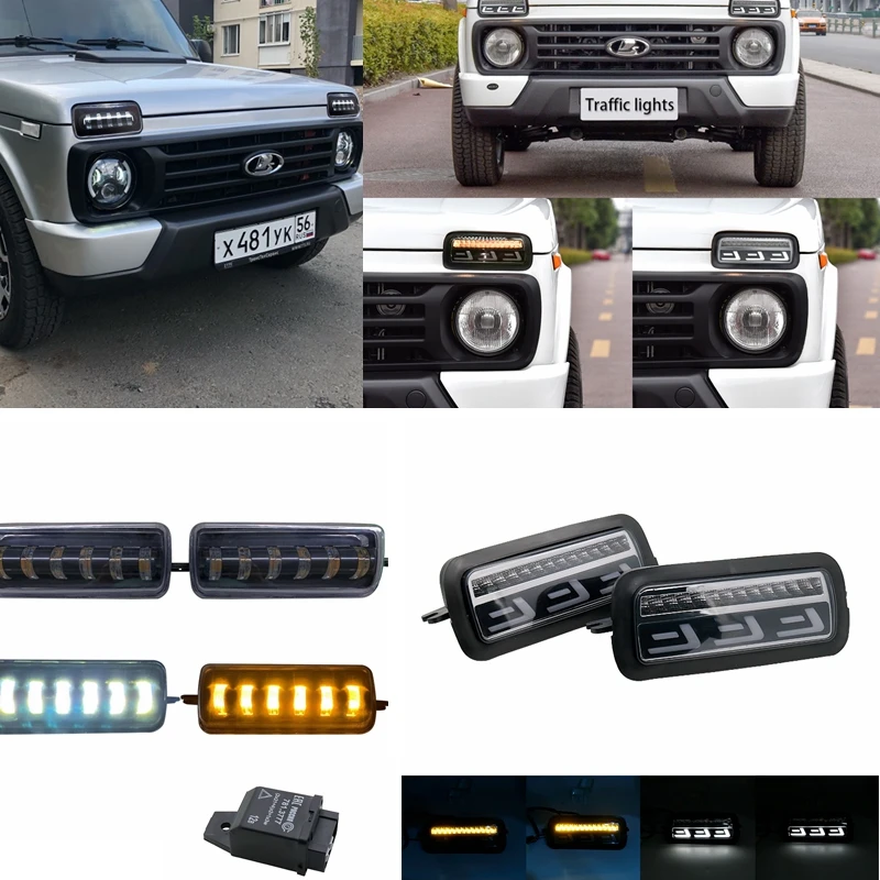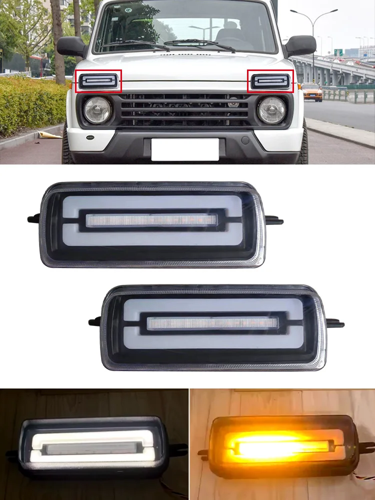 Светодиодные хосветильник огни DRL с указателем поворота для 2121 городских автомобилей, нива, Лада, 4x4, автомобильная фара, декоративная фара для поверхности автомобиля, дневные ходовые огни