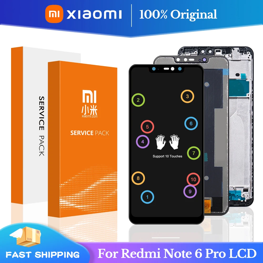 Оригинальный ЖК-дисплей 6,26 дюйма для Xiaomi Redmi Note 6 Pro, с рамкой, сенсорный экран, дигитайзер, ЖК-дисплей для Redmi Note6 Pro, ЖК-дисплей в сборе