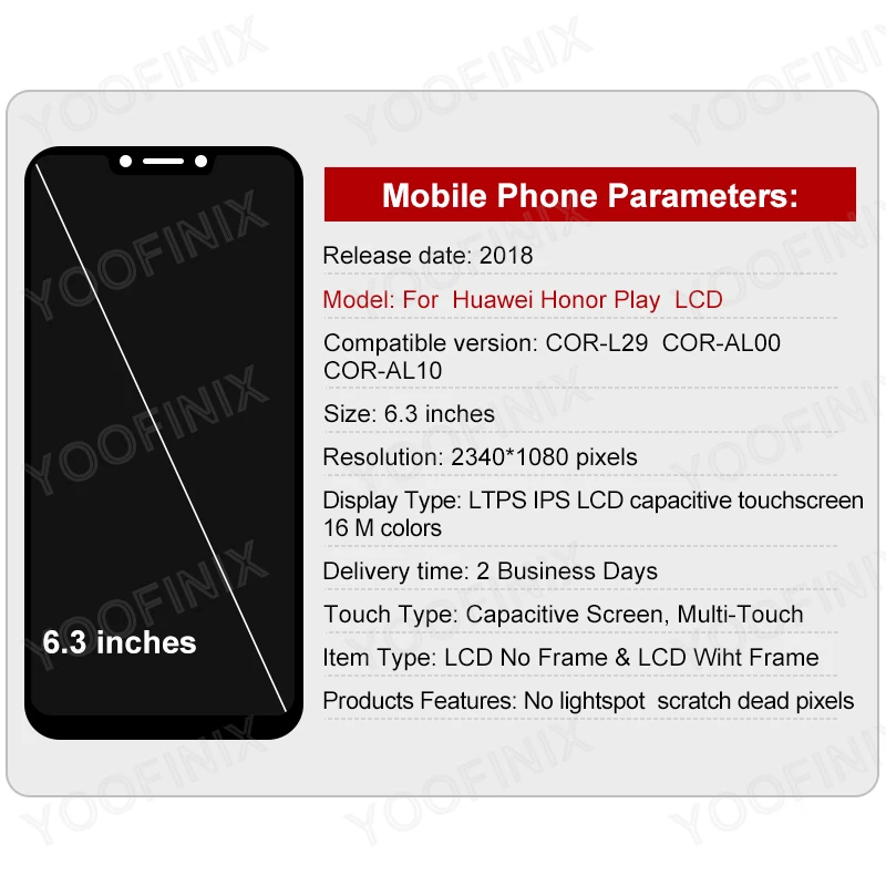 ModelFor Huawei COR-L29, COR-L09, COR-AL00, COR-AL10, COR-TL10 LCD