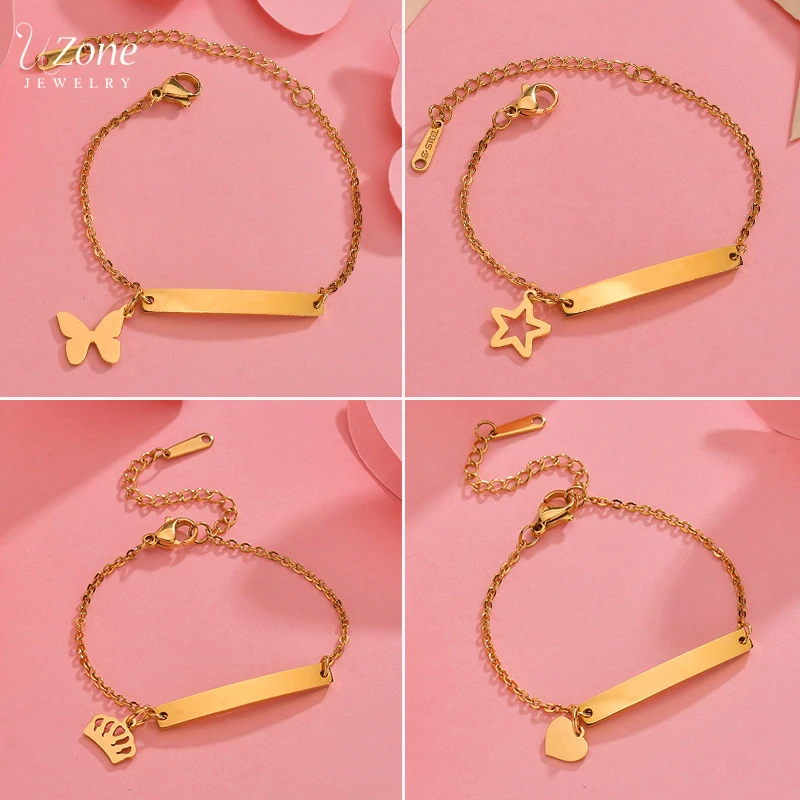 UZone на заказ выгравированное имя для детей из нержавеющей стали Сердце Браслеты с бабочками персонализированные ручные цепи подарок на день рождения детей