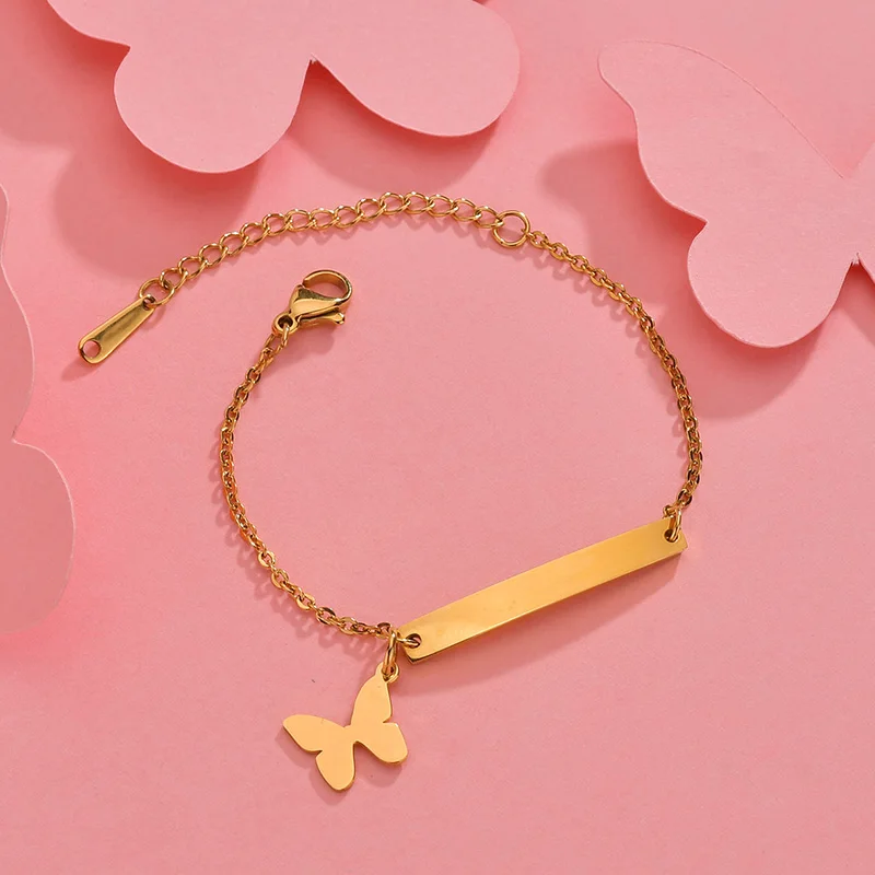 UZone пользовательская гравировка имени ребенка нержавеющая сталь Сердце Браслеты с бабочками Персонализированная ручная цепочка детский подарок на день рождения